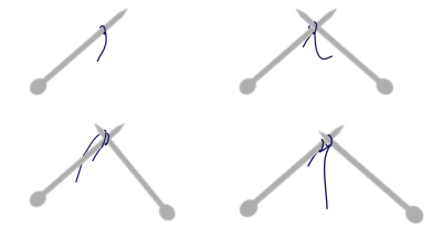 Montage des mailles à deux aiguilles au tricot : faire une première maille, puis la tricoter et l'ajouter sur l'aiguilles de gaache et ainsi de suite.