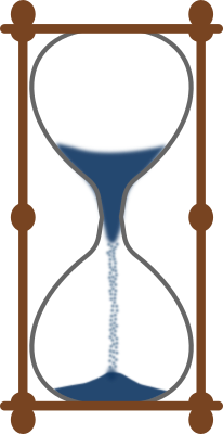 Hourglass with blue sand.