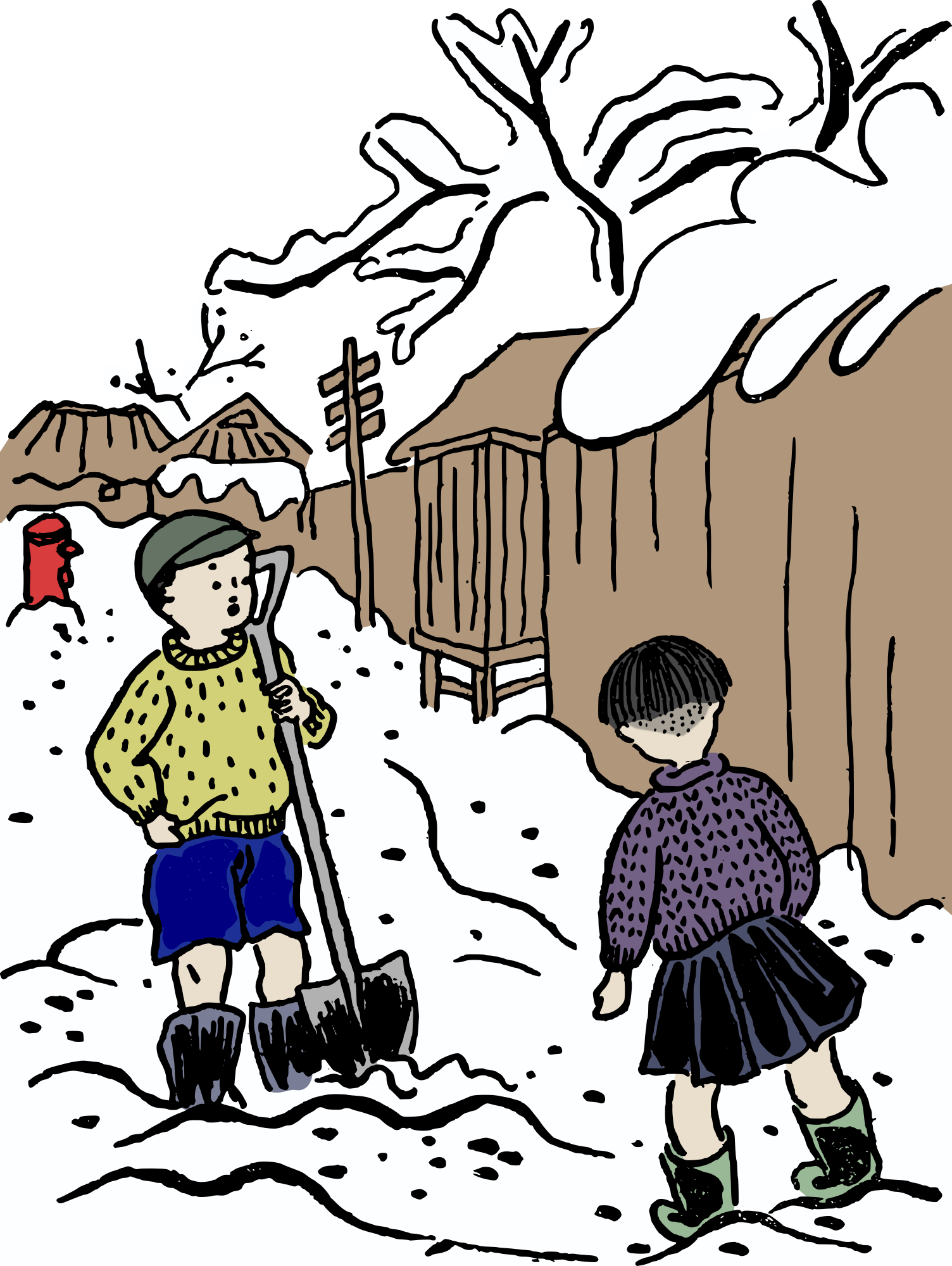 a colour version of this retro snowy scene in Japan