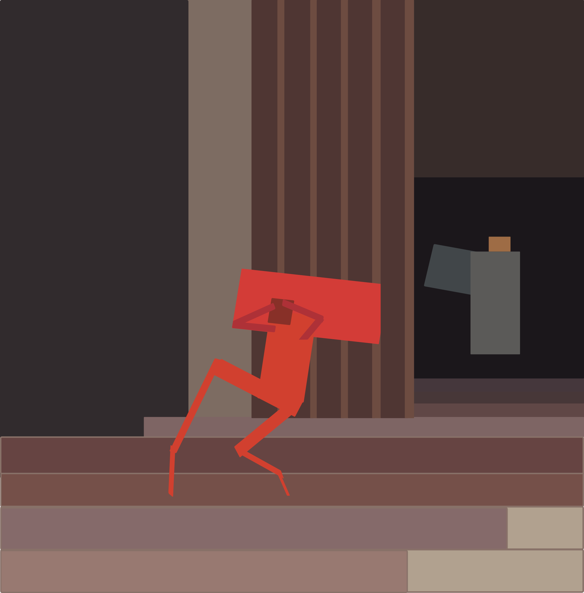 Basé sur la peinture d'André Devambez, l'idée était d'en rendre l'esprit uniquement avec des rectangles en a-plats de couleurs.