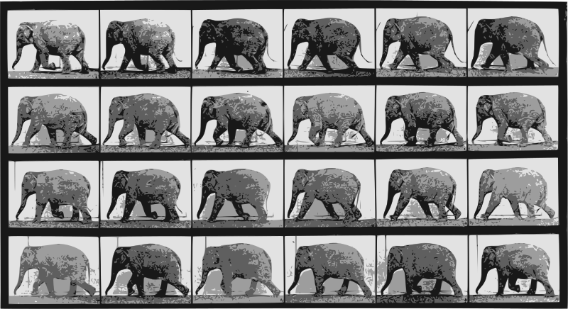 a sequence of shots of an elephant walking