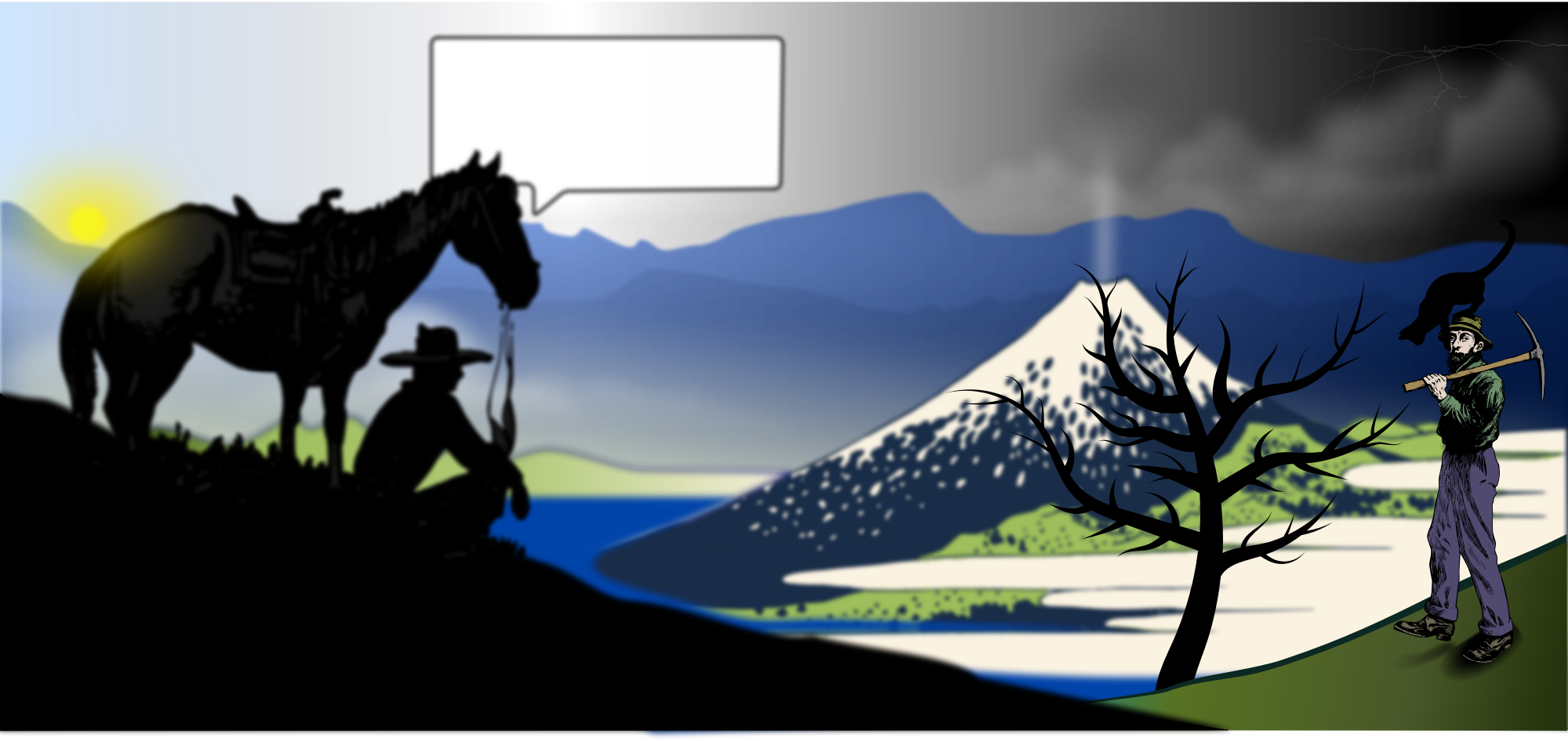 I did not write anything in the bubble speech. It's up to you to find and write what the horse might say while looking at this strange landscape.