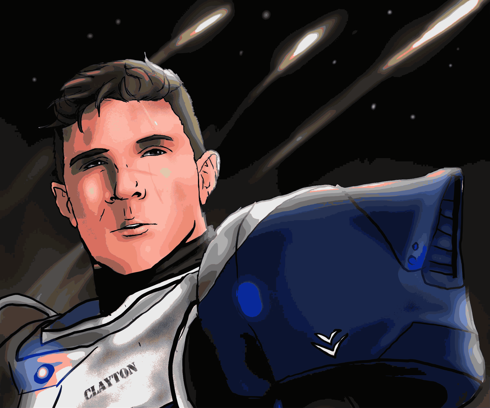 Based on the public domain image https://www.dvidshub.net/graphic/1652/space-sailor "171231-N-BK888-1001 ARABIAN GULF (Dec. 31, 2017) - Mass Communication Specialist 3rd Class Austin Clayton, a Sailor aboard USS Theodore Roosevelt (CVN 71), is portrayed as a futuristic Sailor. U.S. Navy illustration by Mass Communication Specialist 3rd Class Kyle D. Peterson/RELEASED."