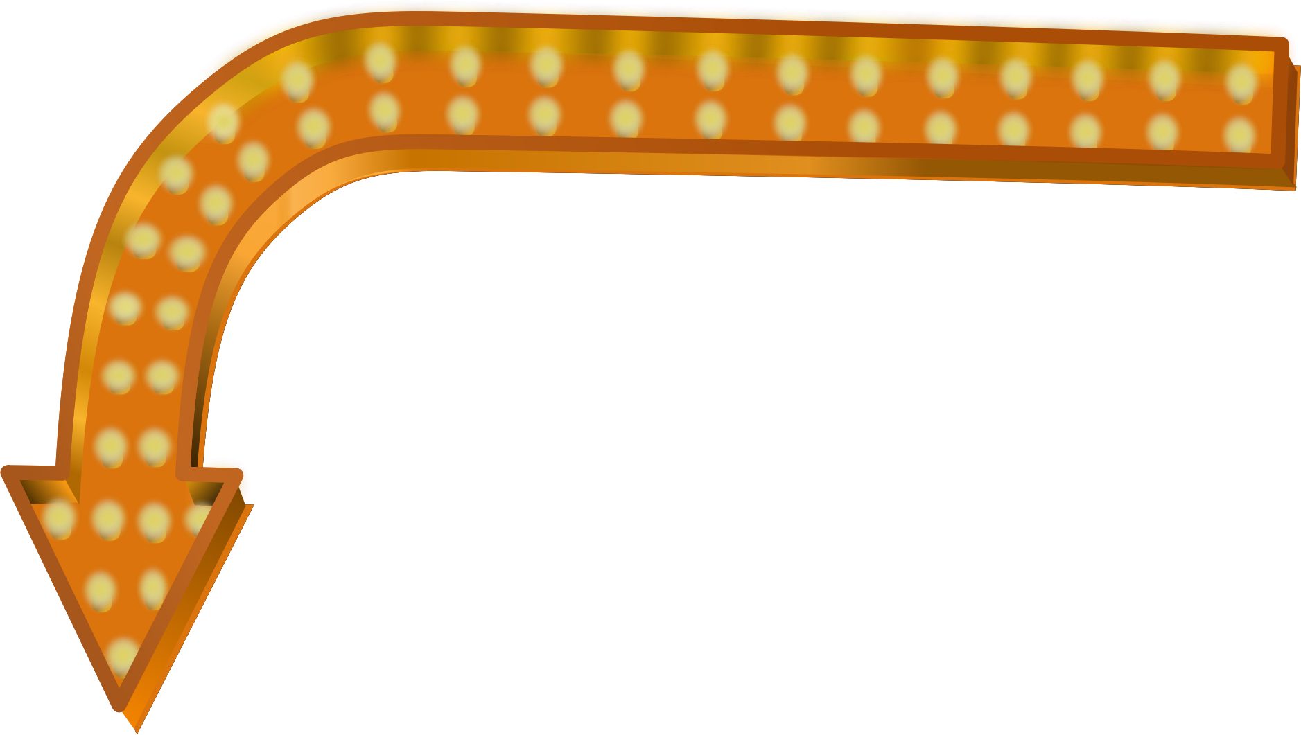 An orange arrow for use on a neon sign. It was originally done in Affinity Designer but exported and re-edited in Inkscape to keep most of it easily editable, but this muted the colours a little. See my "Neon Band Logo" for a slightly more tweaked version of this with brighter colours.