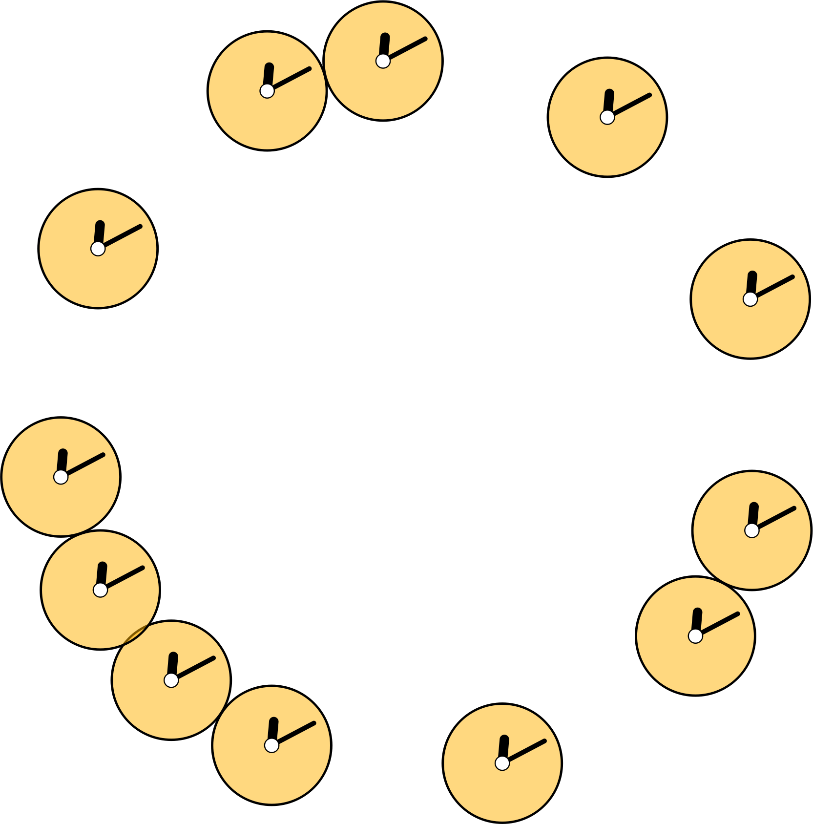 Can't get enough clocks? Here are twelve of them showing the same time, and their face colour changes depending on the minute. The clocks rotate around the edge of the large clock at different rates, coming together every minute. The date is displayed in the middle indicating the current hour.