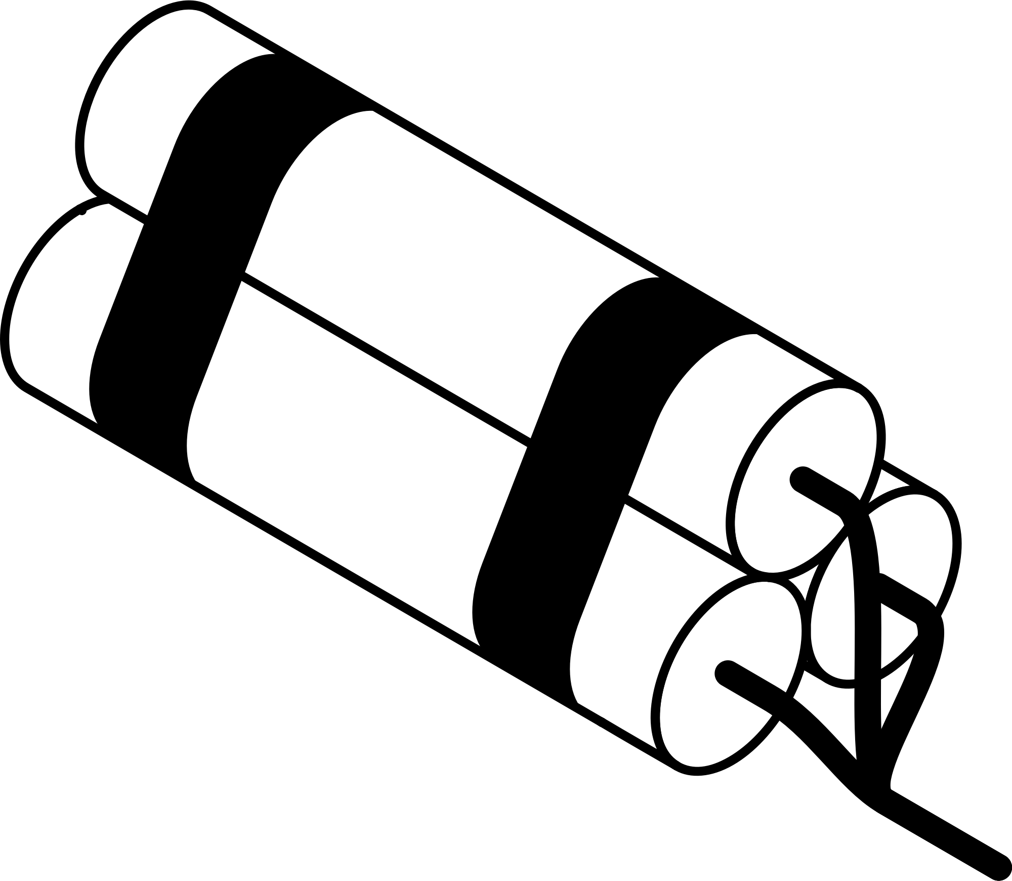 Isometric view of three sticks of dynamite in black and white.