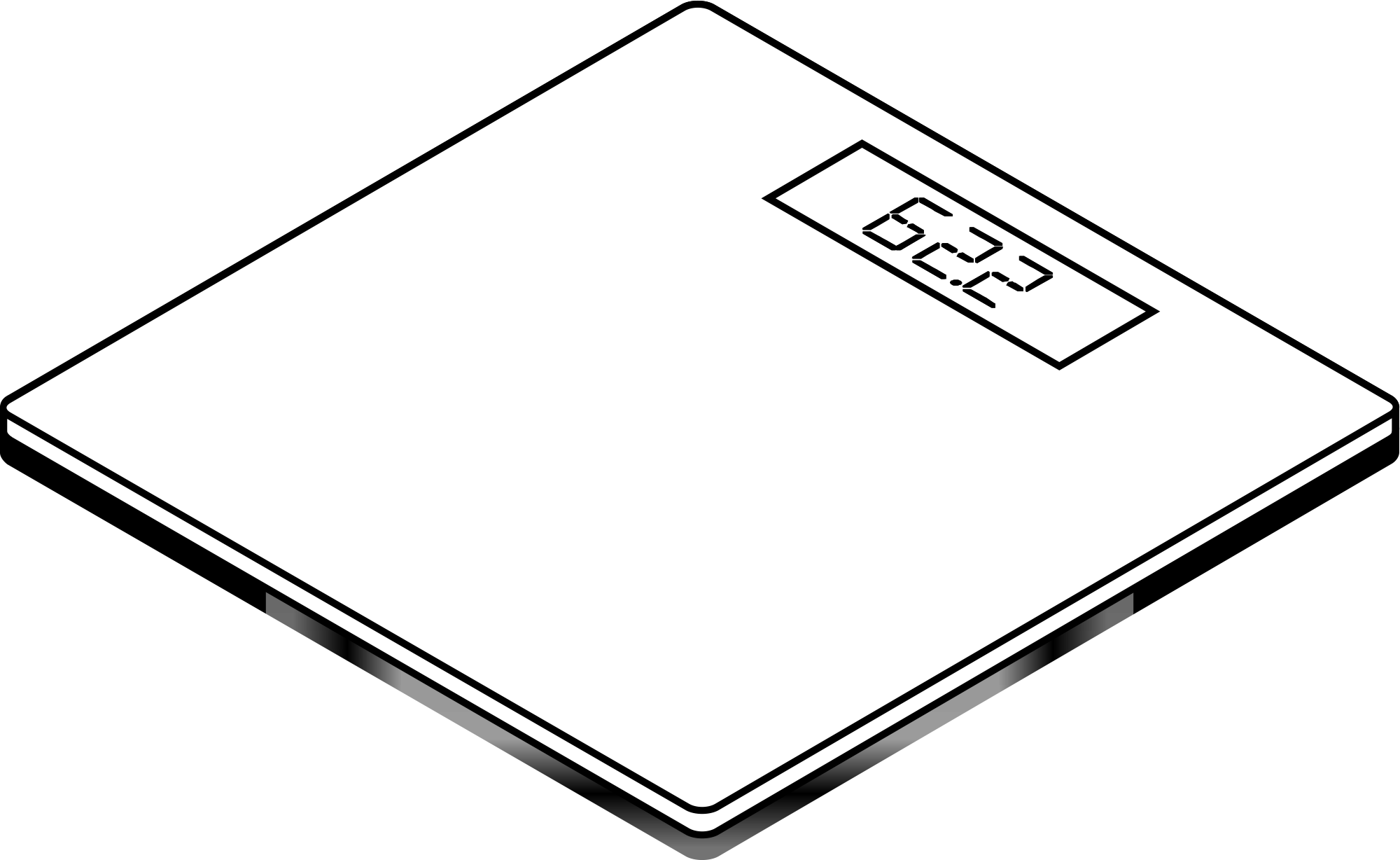 Isometric view of a scale in black and white.