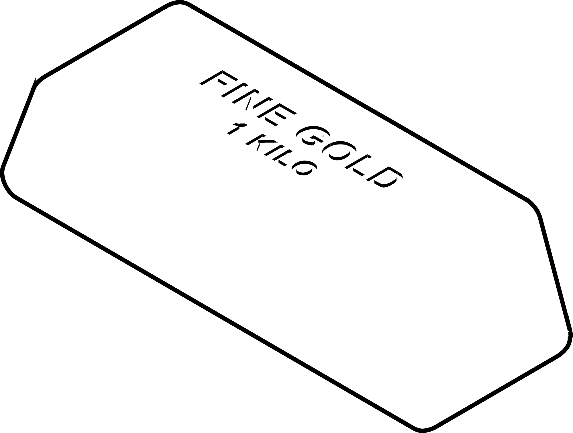 Isometric view of a gold bar in black and white.