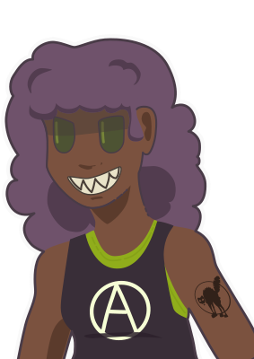 I put the sabocat tattoo back and replaced the CRASS t-shirt with an anarchist logo.