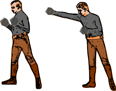 Man throwing a punch wearing gauntlet gloves.