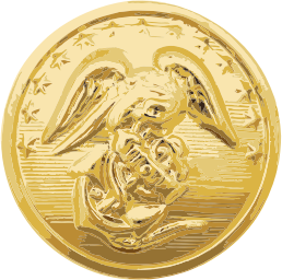 Button from a US Marine Corps Dress Blue uniform blouse (coat). The button is made of brass and is either polished or is gold plated or washed.