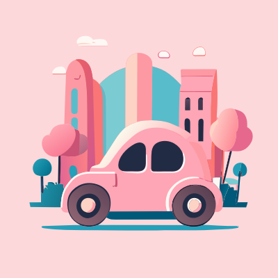 An ai-generated small city car with a cityscape in the background