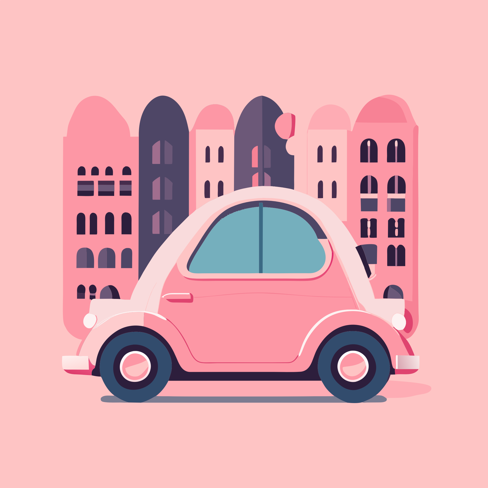 Small city car with cityscape background