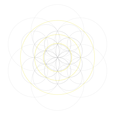The base geometric circle pattern has been expanded to include the phi delimiters required for the next level (Knew) thinking that both Russian and Great Pyramid construction employs.