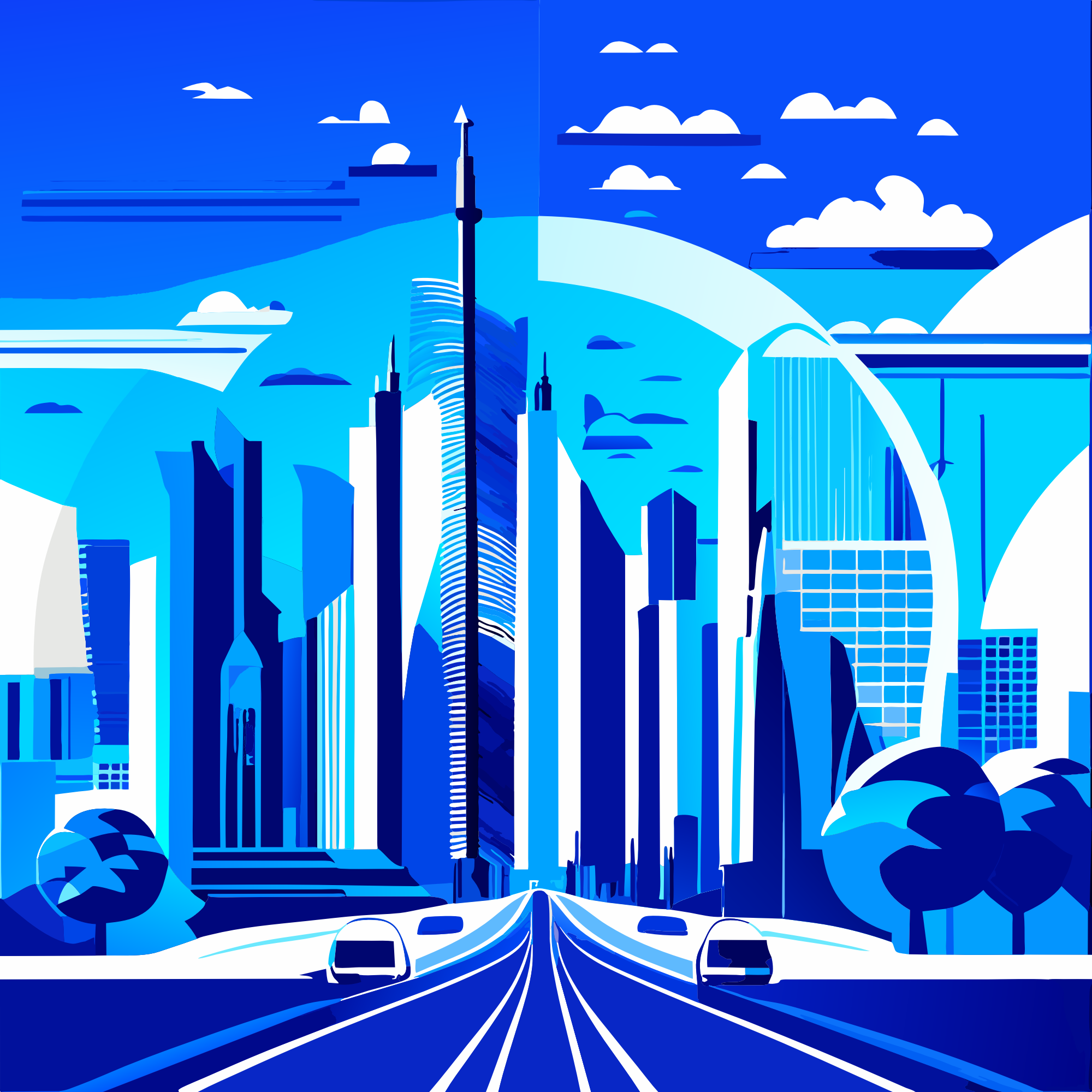 Cityscape in blue tones