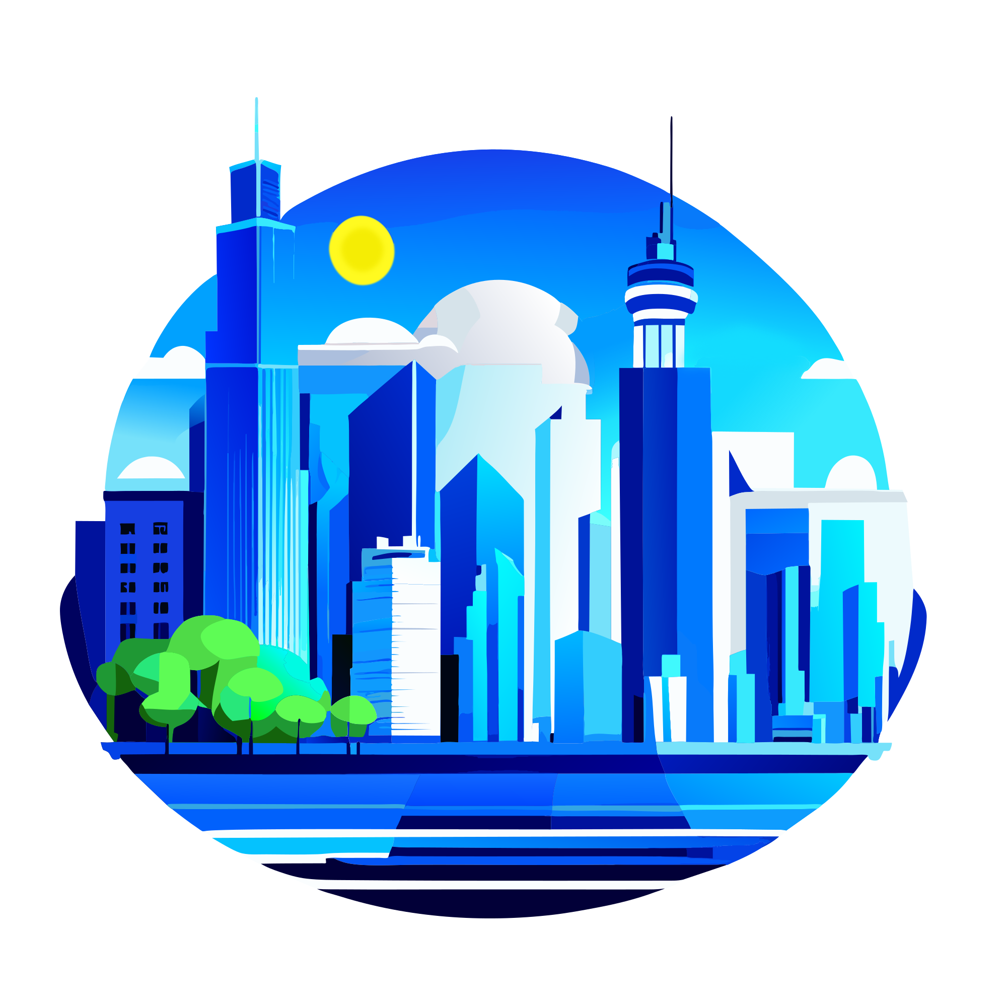 Maybe I am missing the point of @molumen 's excellent ai cityscape, but I thought that it needed a yellow sun and some greenery to balance the blue of the buildings... so that's what I did (and cleaned up a few lines and fixed the solid background etc)