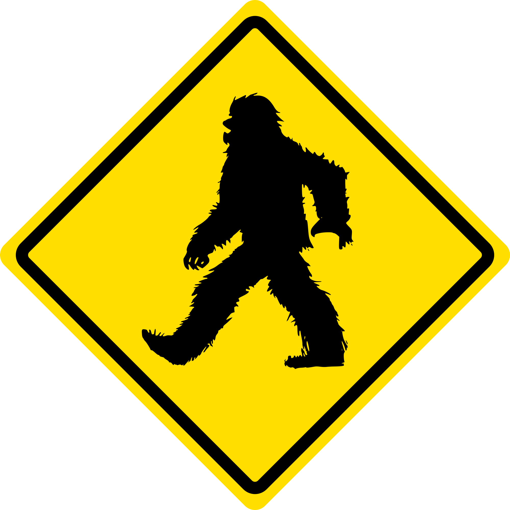 a sasquatch road crossing warning sign ... careful when you are driving!