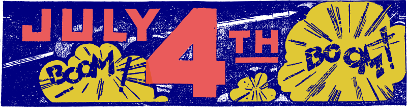 - July 4th text banner Fourth of July American holiday America USA fireworks boom retro vintage