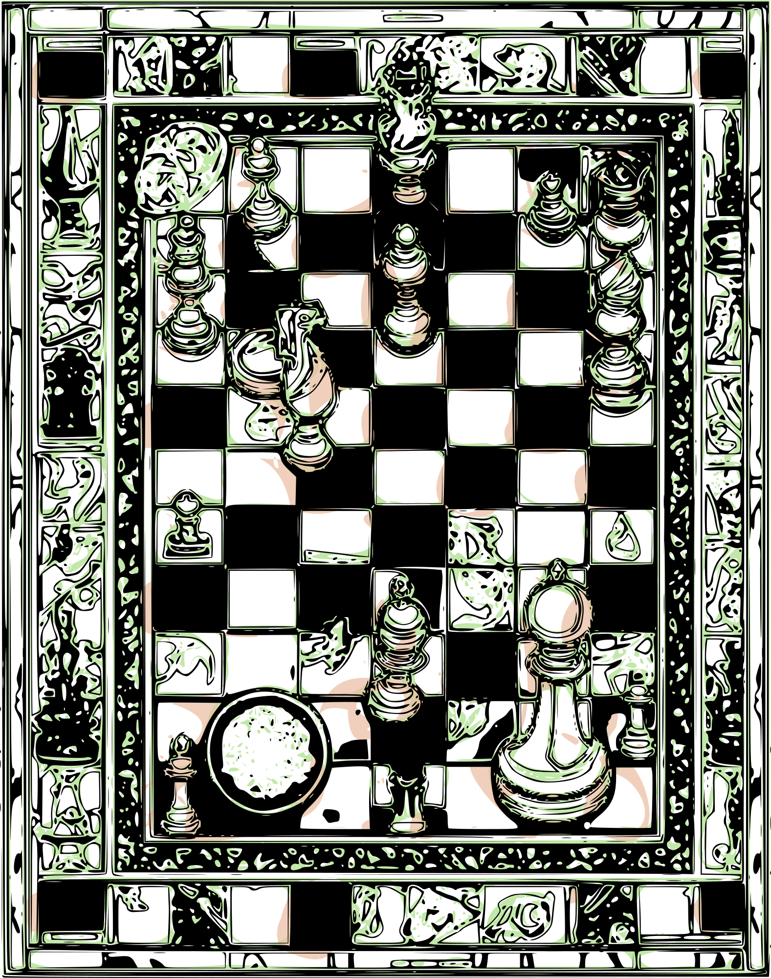 I sadly had to contribute to some nice chessboards going missing from here because of copyright issues. I wanted to offer some chessboards to the universe in exchange for that, so I consulted with an AI friend. Machines can play chess quite well, but the machines that dream up pictures still hallucinate way too much to make a coherent chessboard from our reality. This is one of several strange chessboard dreams this flesh brain and a machine brain dreamed up together.