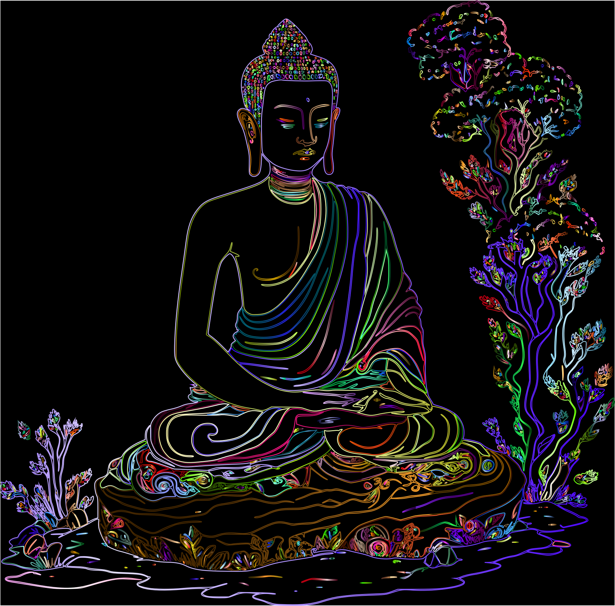 - Buddha Man Meditation Religion Wisdom Philosophy Spiritual Buddhism Meditating Faith Belief Zen Human People Decorative Decoration Ornamental Line Art Colorful Prismatic Chromatic Rainbow Psychedelic remix+343585