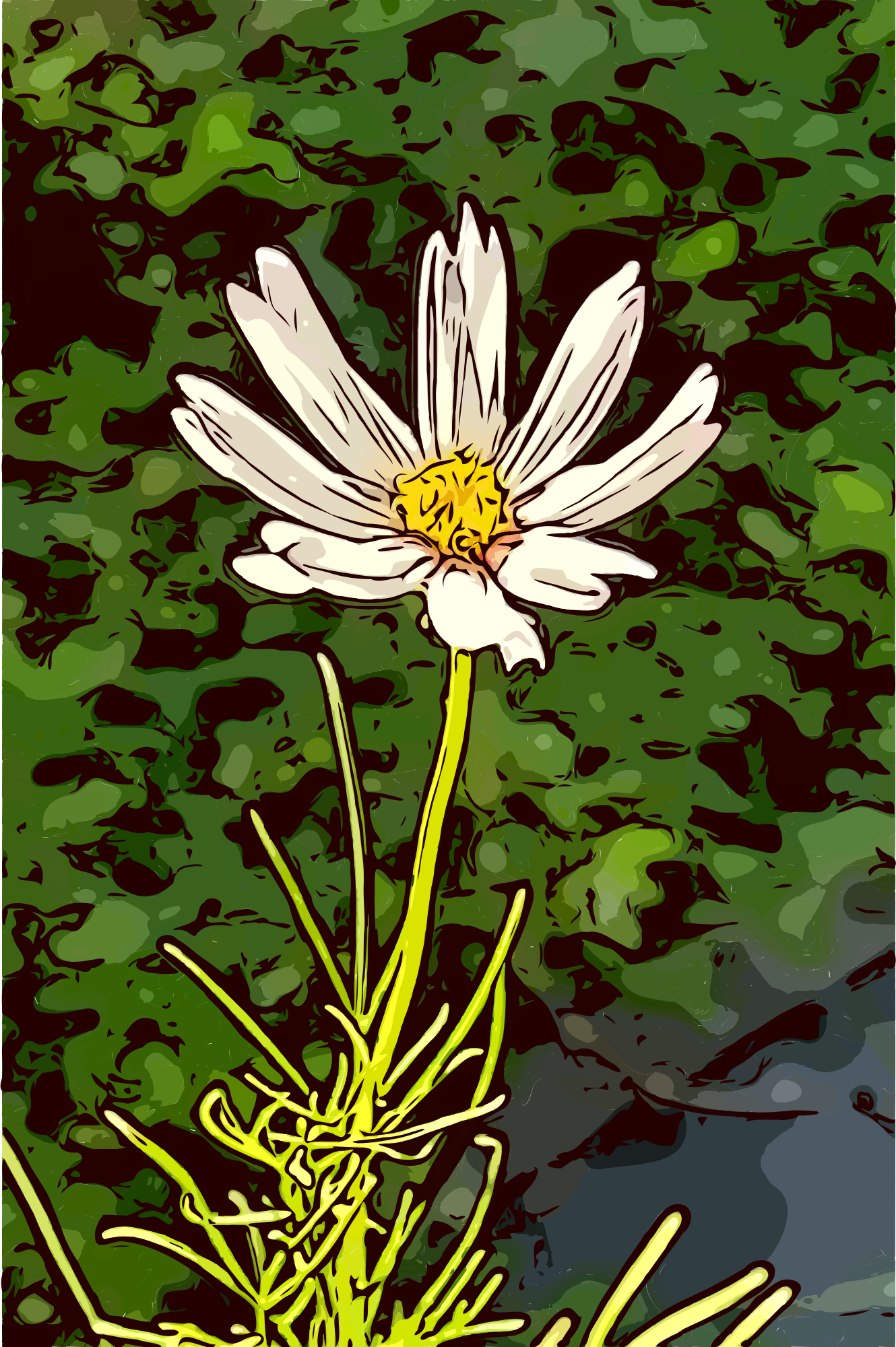 A lonely little white flower in a sea of green