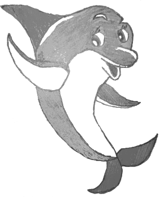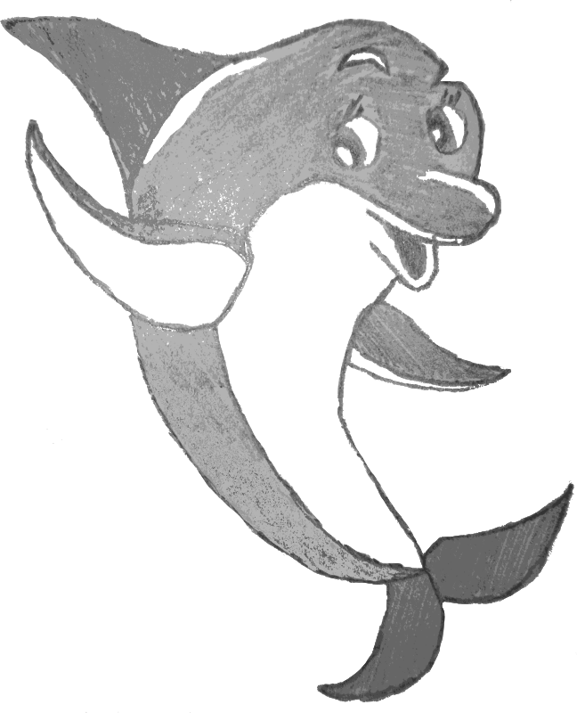 Happy waving dolphin art by me.
