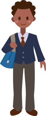 A cartoon boy in a school uniform.