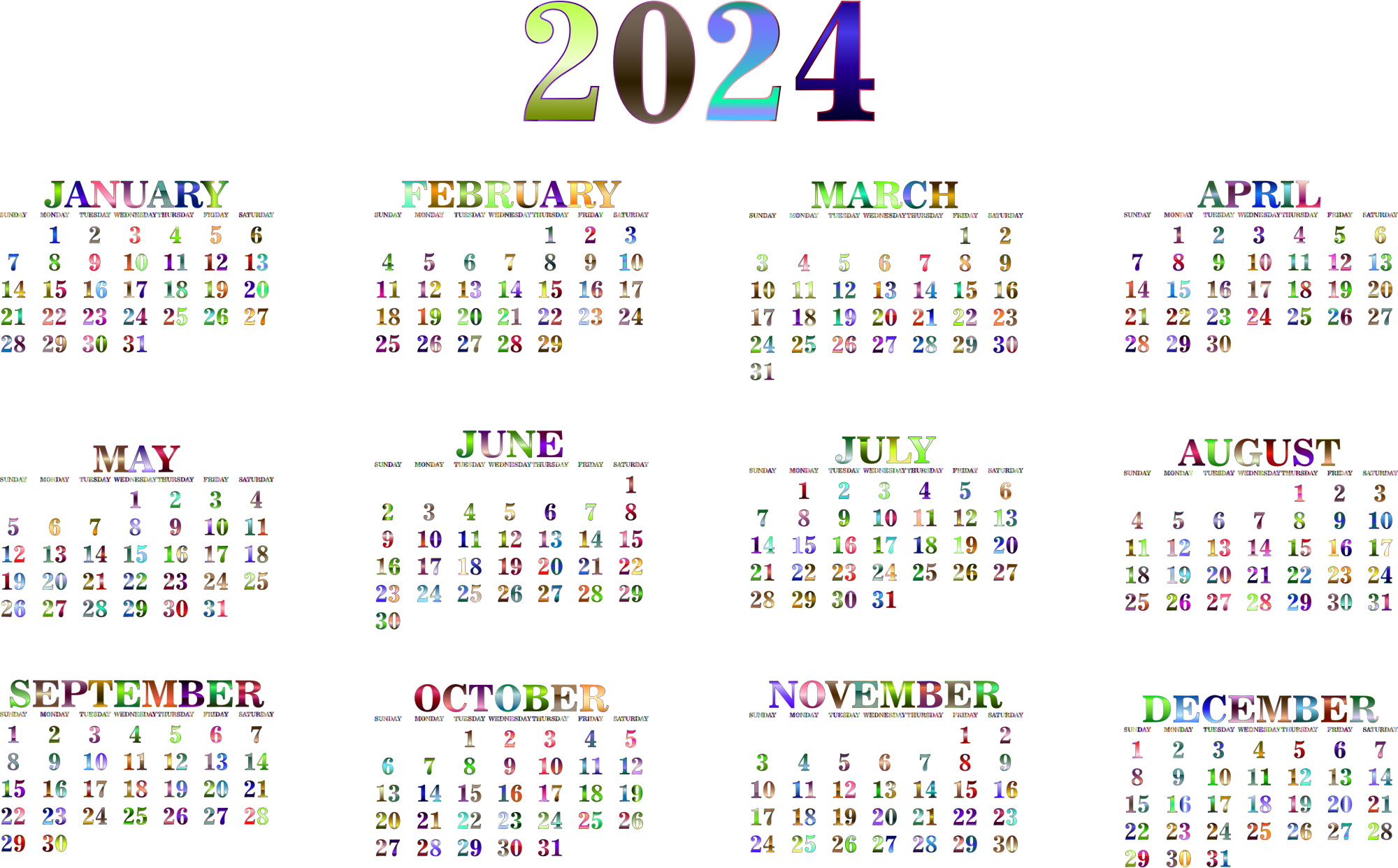 2024 Calendar Chromatic No BG