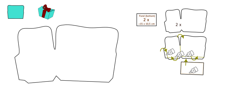 Patron de ballotin, explications intégrées. Dimensions fermé : environ 15 x 10,5 cm sur 8 cm de haut.