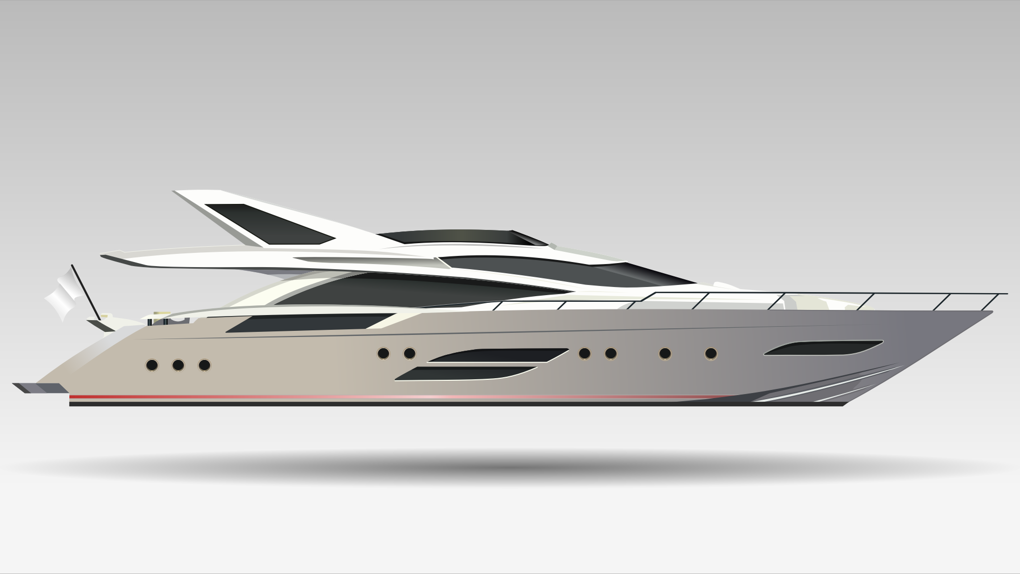 A conceptual design of a modern luxury yacht.