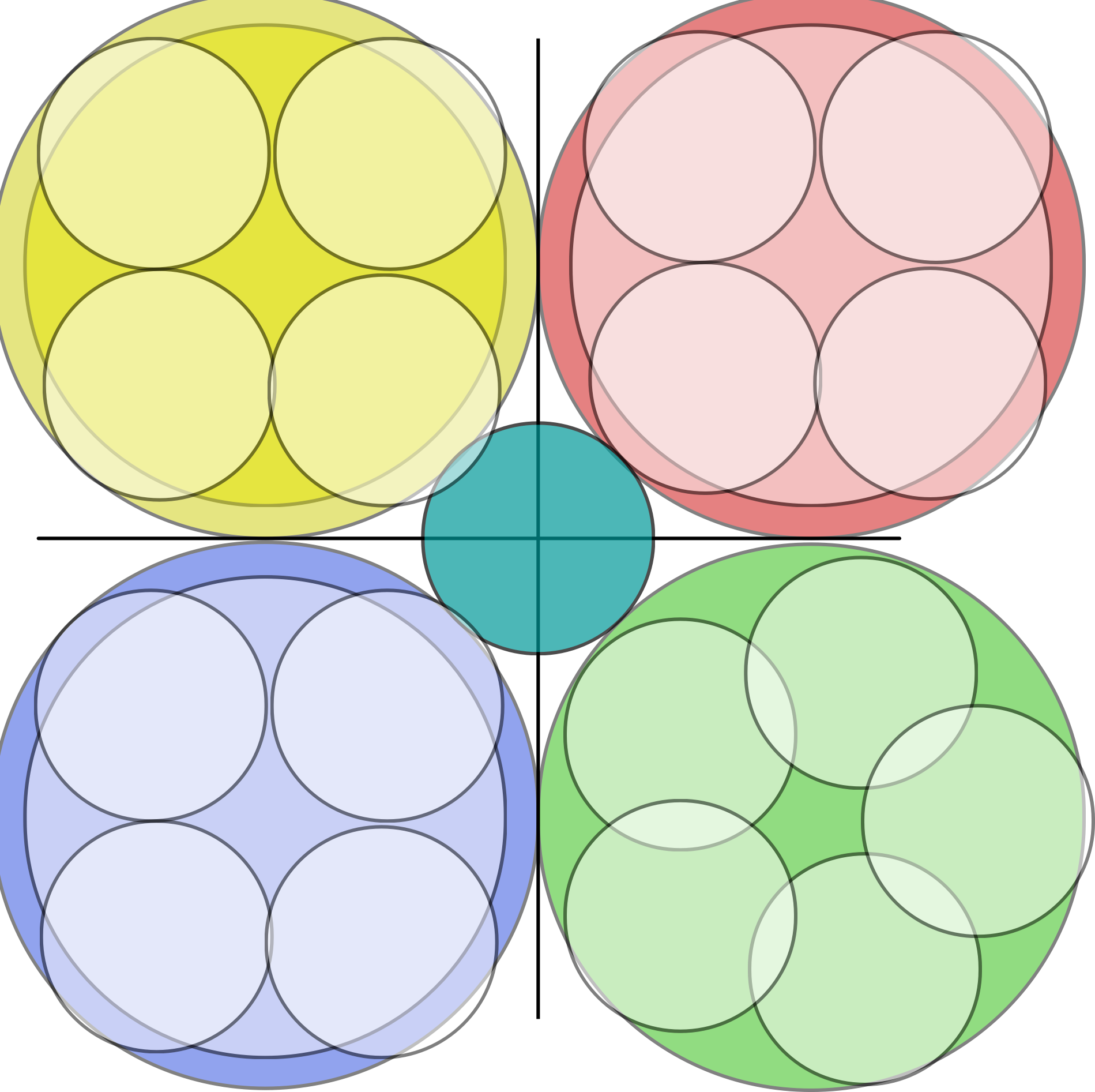4 large overlapping circles and a small central 5th circle for infographics