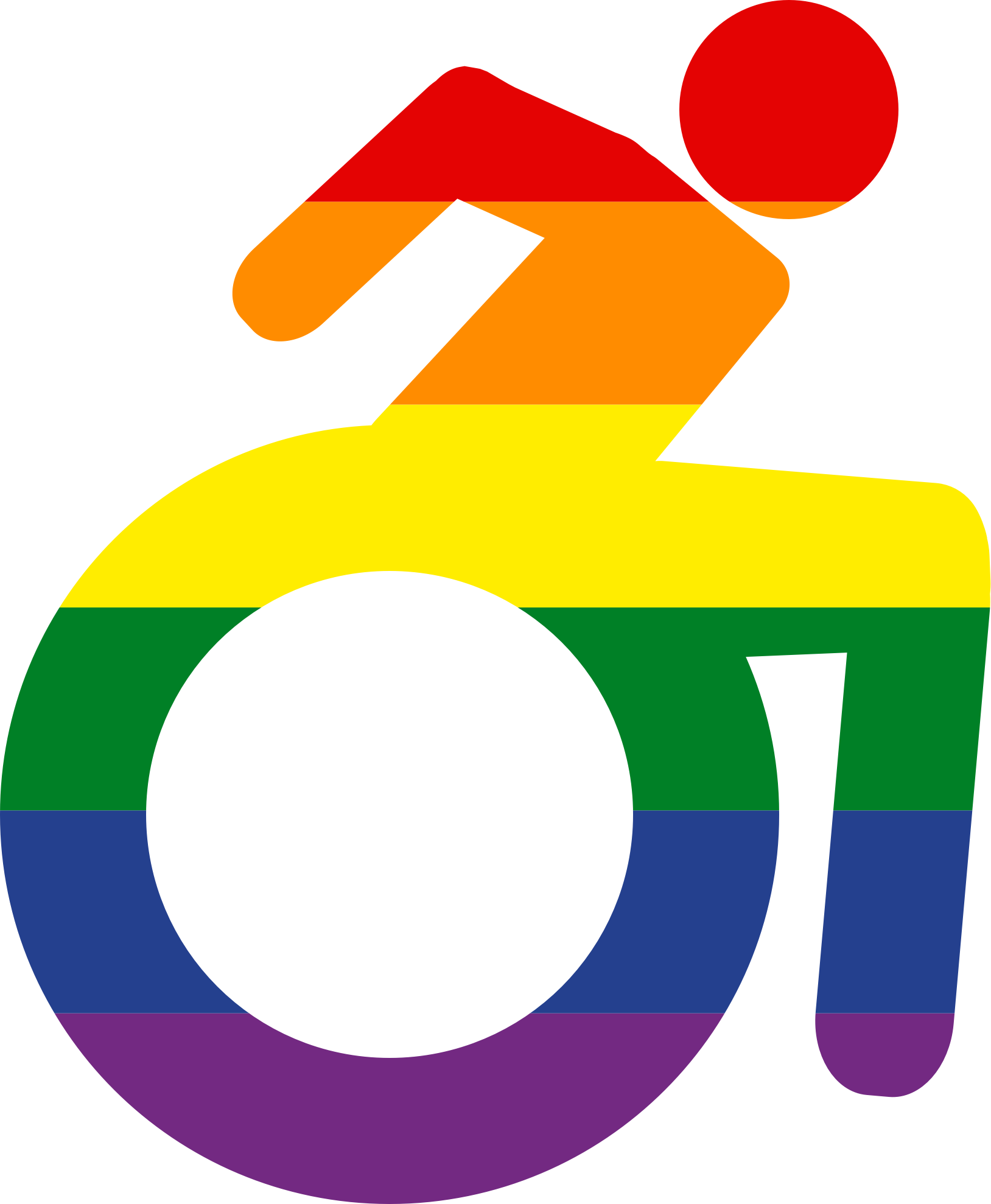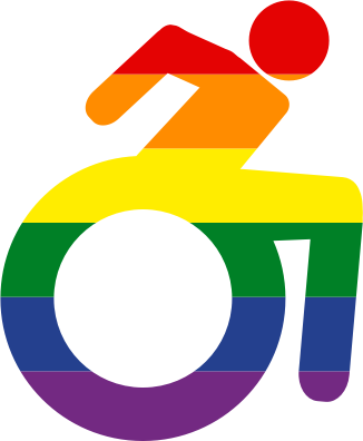 LGBT+ gay pride flag disability icon. Remix of my wheelchair and pride flag icons. https://openclipart.org/detail/344101/non-binary-pride-flag-white-border https://openclipart.org/detail/344113/wheelchair-active-disabled-icon