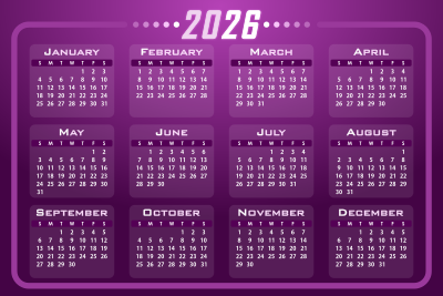A calendar design for the year 2026.
