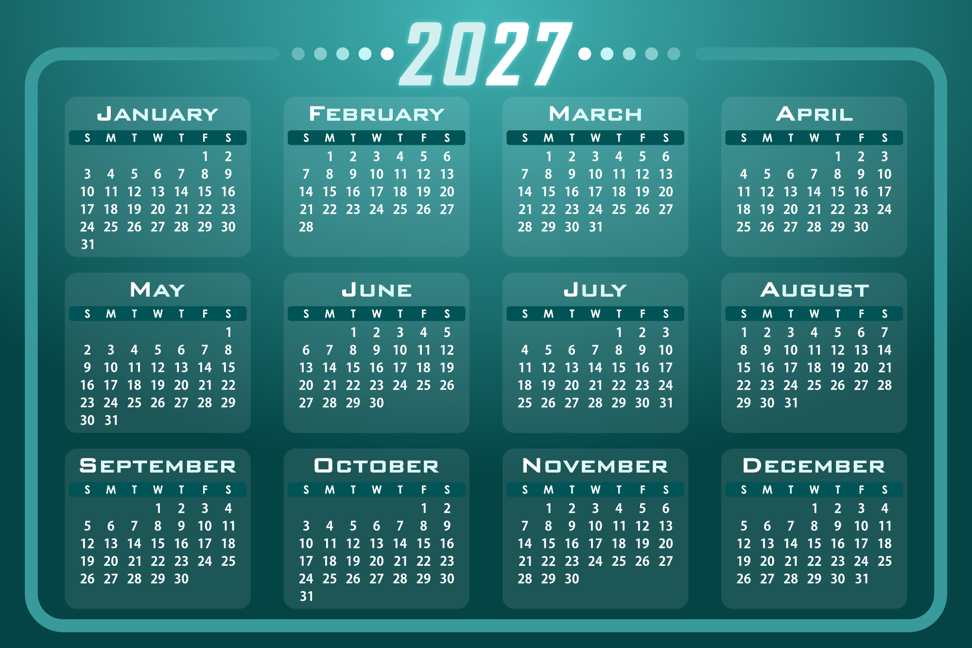 A calendar design for the year 2027.