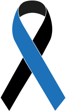 Two color awareness ribbon in blue and black with white outline and without text.