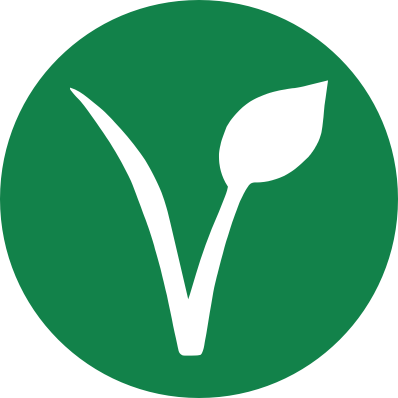Vegan v round plant seed in solid dark green with circle background