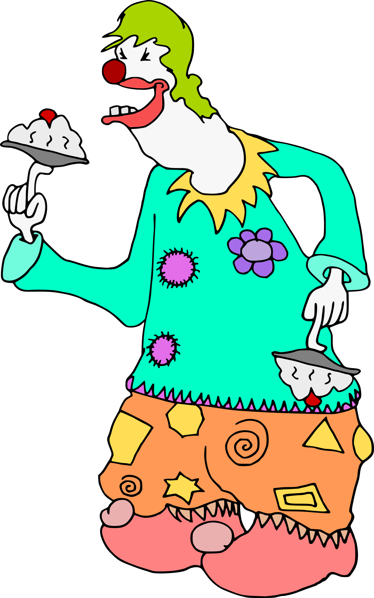 a clown with two cream pies... in colour!