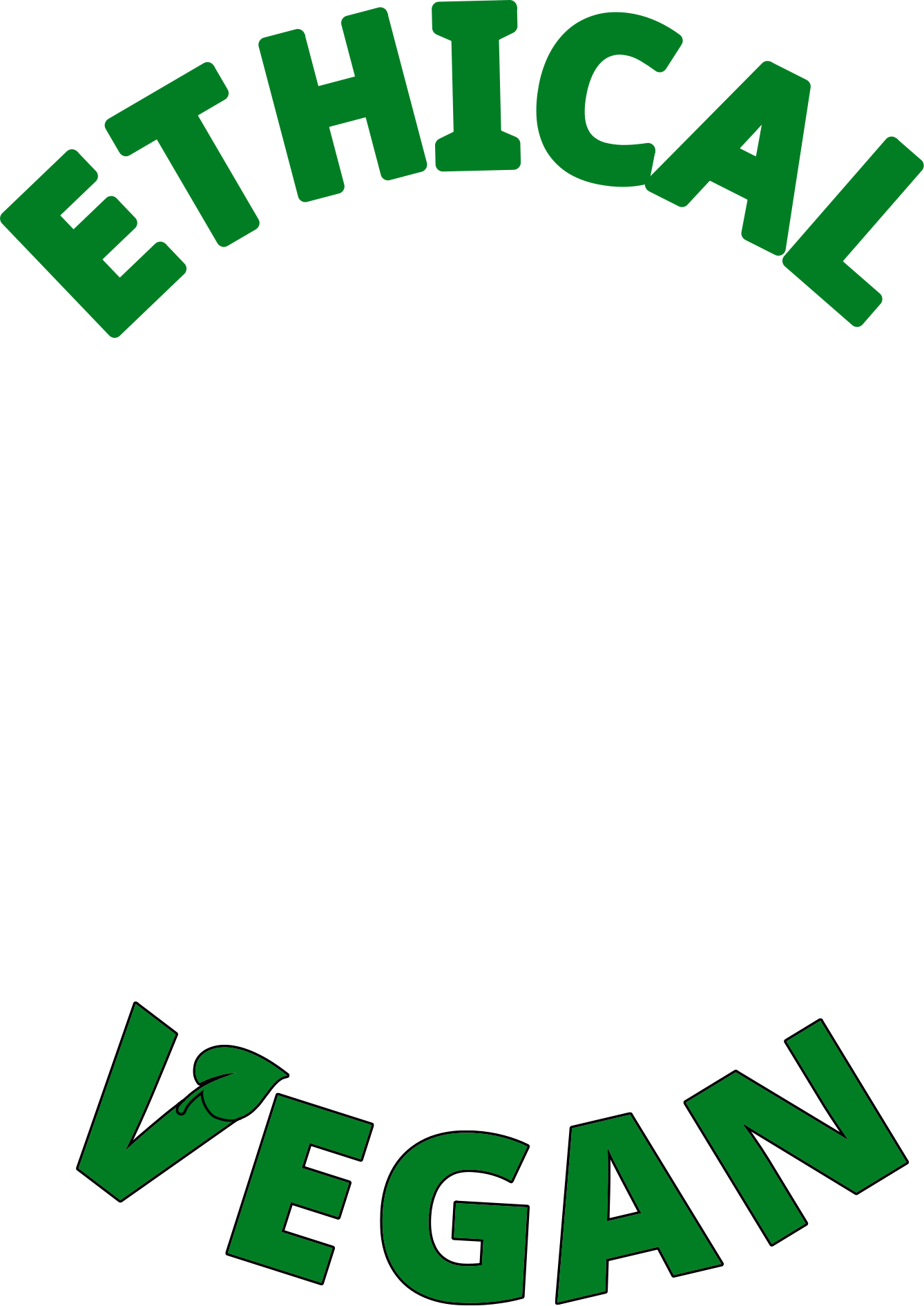 Ethical vegan text in green and curved info circle shape, transparent background
