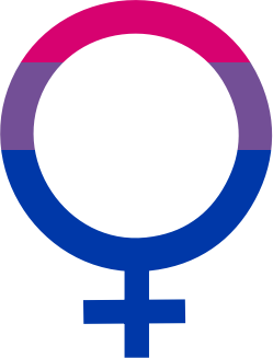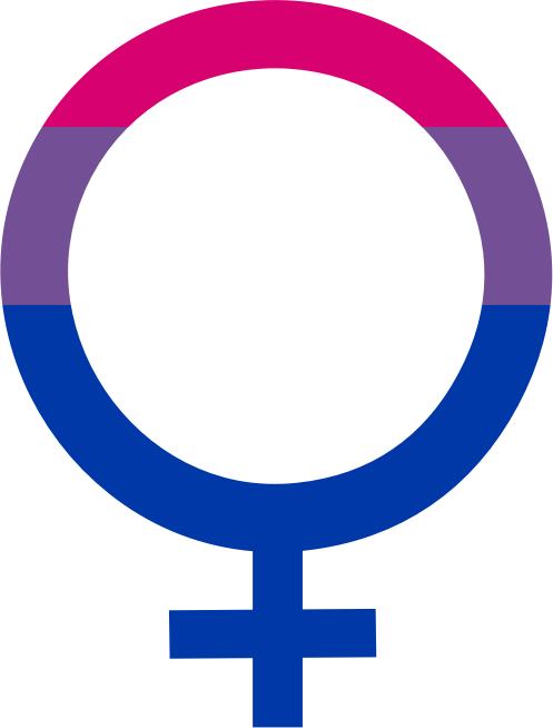 Bisexual pride flag colors in the shape of the venus symbol representing females
