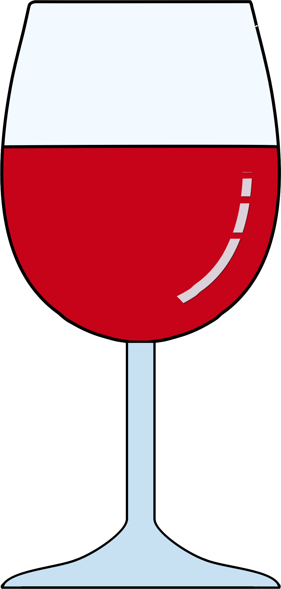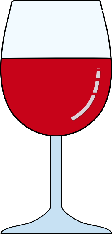 Glass of red wine with reflection on the side. A fixed version of the original (left side fixed and top of glass level) https://openclipart.org/detail/344160/wine-glass-red-half-full