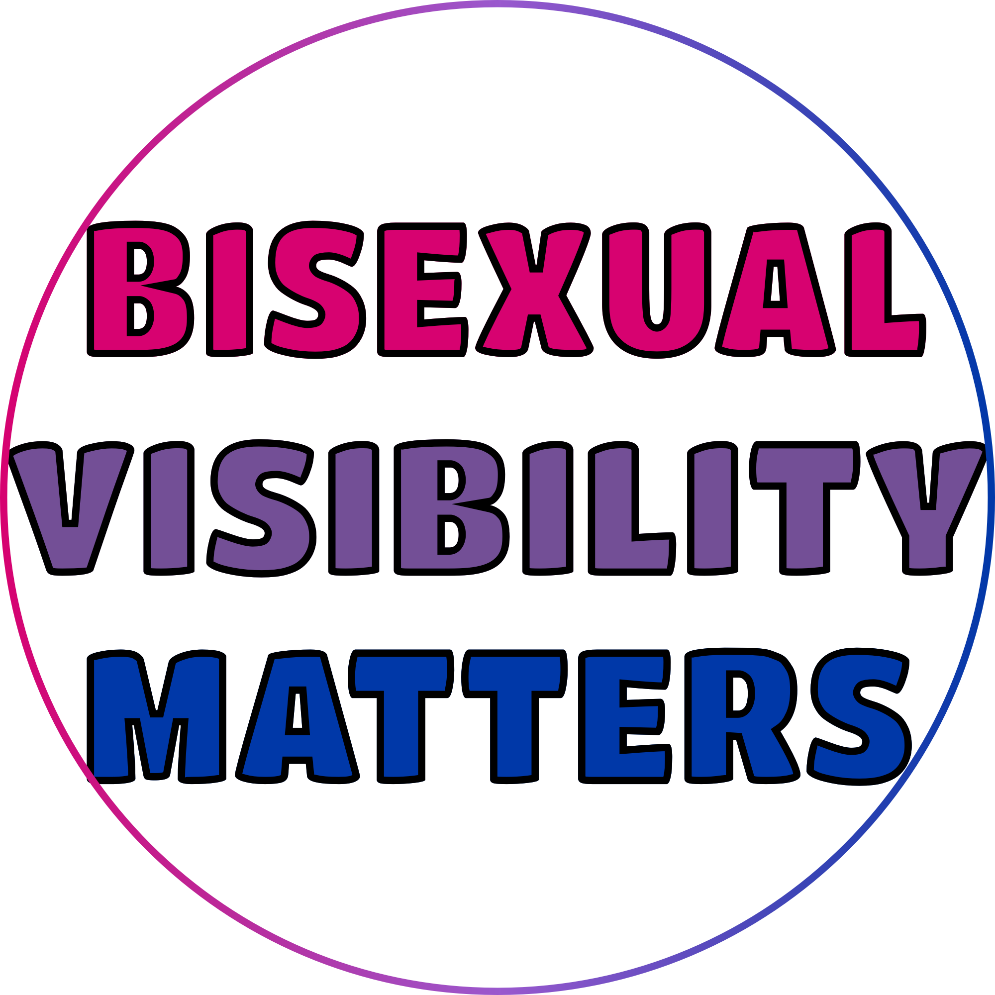 Bisexual visibility matters in bisexual pride flag colors, with a border in a gradient of the #bi pride flag colors.