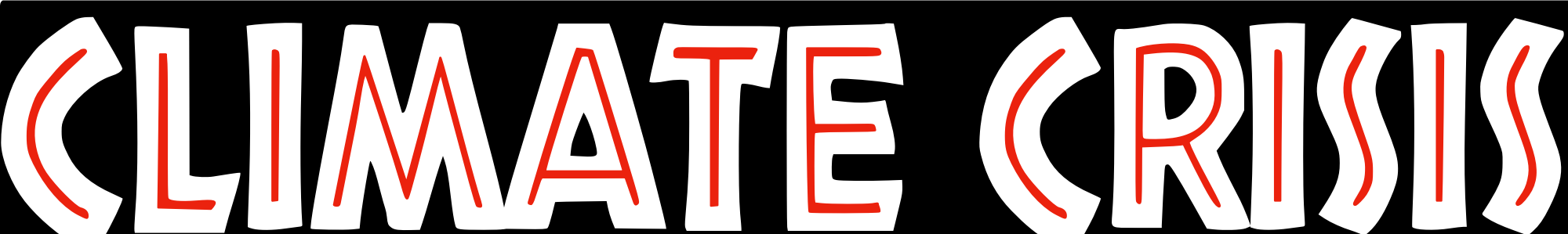 Climate crisis in black text using the freeware font African by Allen R. Walden (font created Dec 13, 2006). Minor mods made including red rather than transparent inner color, thicker letters / thinner outlines, and condensing it. Inspired by the dinosaur disaster movie Jurassic Park.