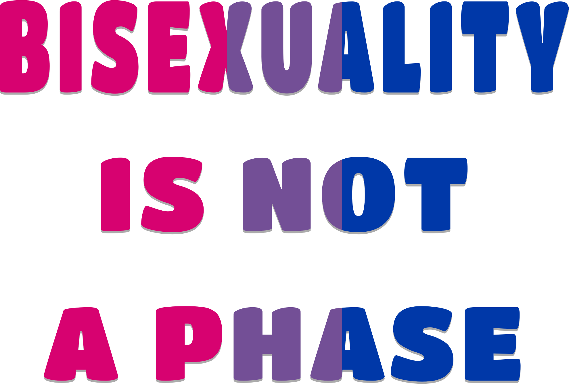 Bisexuality: it's not a phase anti-biphobia slogan in the 3 bisexual pride flag colors