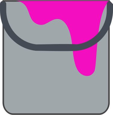 Paint bucket with drips and with hot pink paint. A modification of a free paint bucket icon with pale red paint from the Linearity Curve ios app (see their website), with some modifications I made eg to the handle. It was surprisingly awkward to find one without a paint brush in front, and with the handle down rather than floating mid-air.