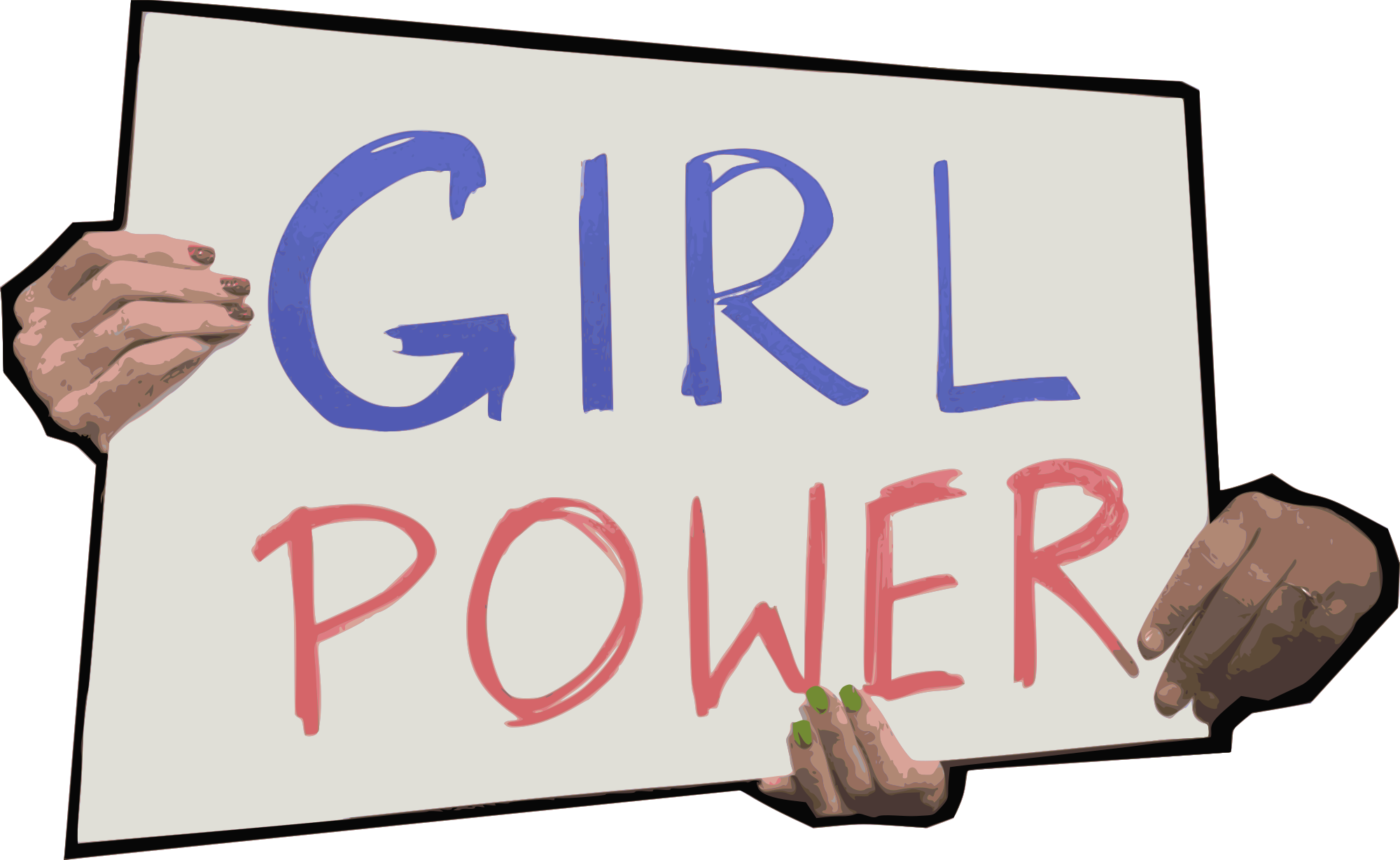 hands holding a "Girl Power" sign (based on a public domain source from Wikimedia)