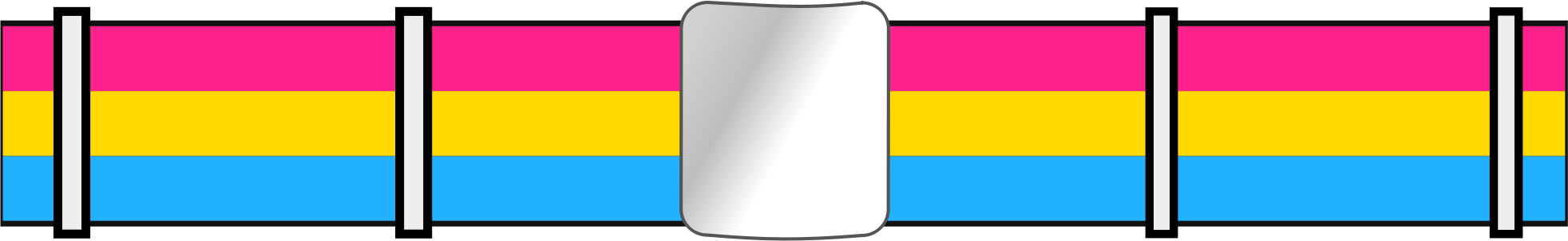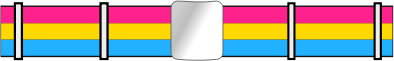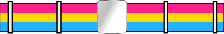 Pansexual pride flag colors in a belt. Three colors.