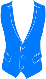Formal wear - traditional men's waistcoat in royal blue, with white edging. Colors often match bridesmaid dresses for weddings.