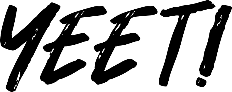 - yeet yeeted ! typography word+art wordart no nope reject fail slang Internet hey+November font Khurasan black script exclamation surprise approval humor excited excitement online textured word reaction react auto+trace external+source vectorized doodle