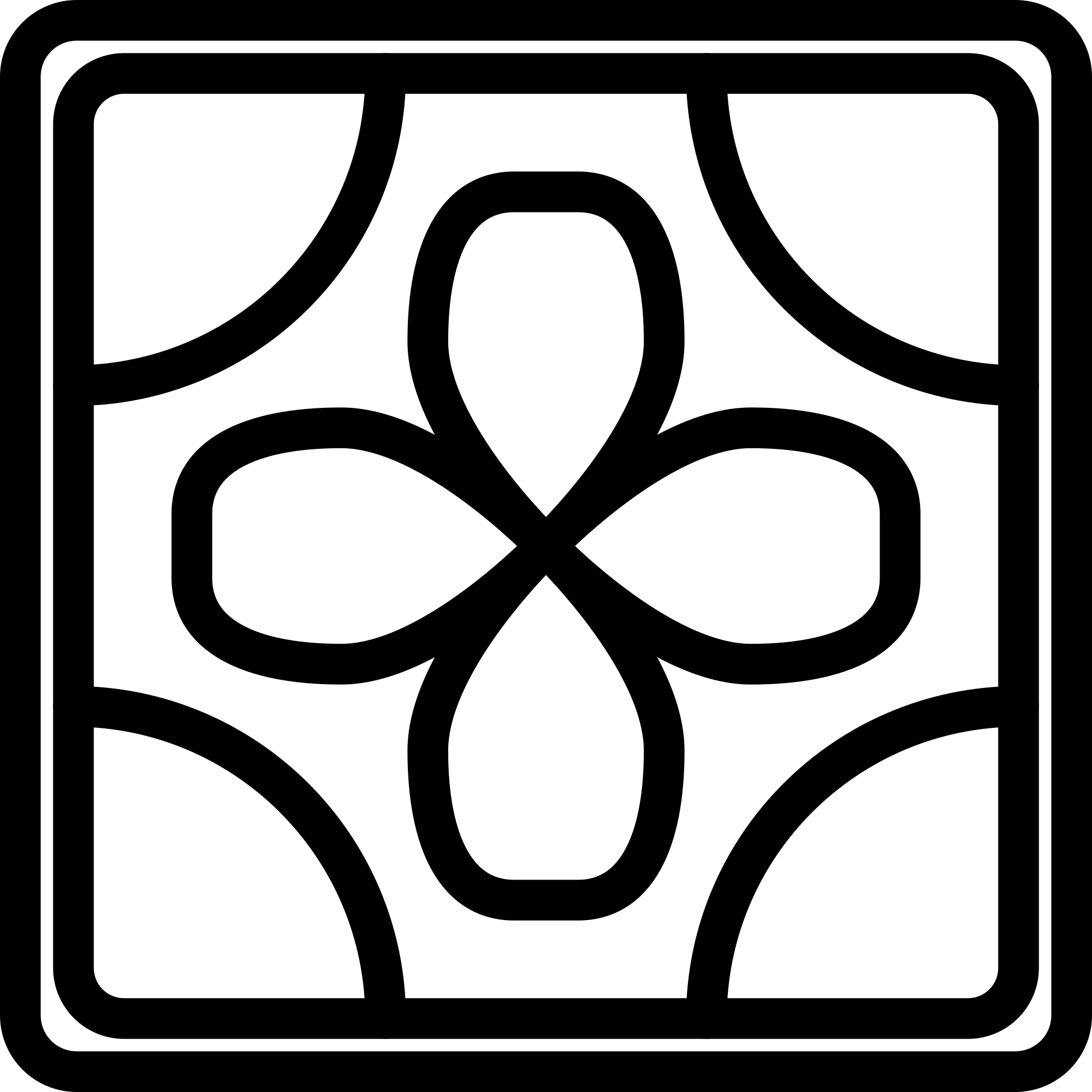 A simple black and white icon of a ceramic tile with a flower