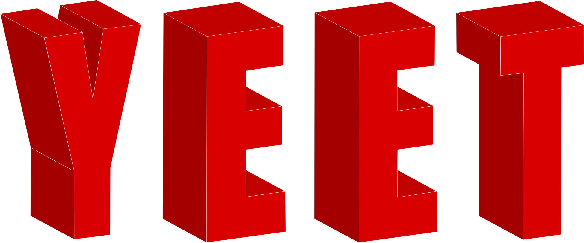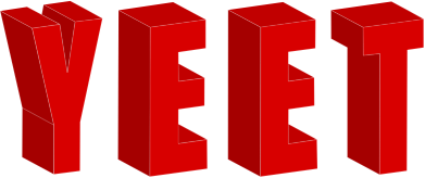 Yeet in red text in the freeware font Discrdive 3D Font by "ampersand", but redrawn.